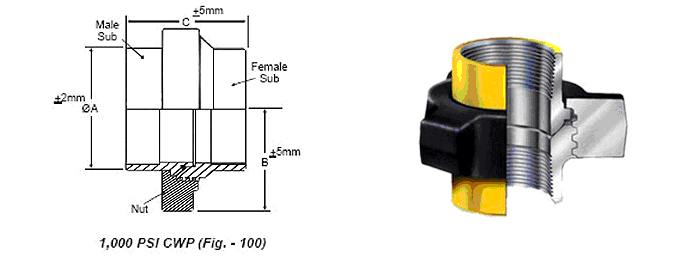 Fig 100.These low pressure unions are ideal for manifold and applications where CWP does not exceed 1000 PSI.