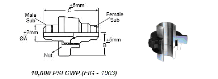 Fig 1003.These unions protect against electrolytic action. There is no metal - to - metal contact between the subs. A resilent seal ring in the female sub provide additional sealing and protection from corrosion. Suitable for 2000 PSI CWP